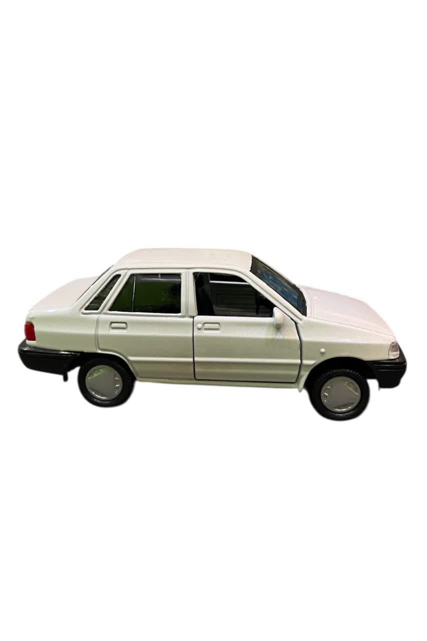 ماشین بازی پراید که درب های جلو باز می شود و جنس فلزی است و ماشین مدل می باشد در واقع یک نسخه کوچک شده از ماشین واقعی است.